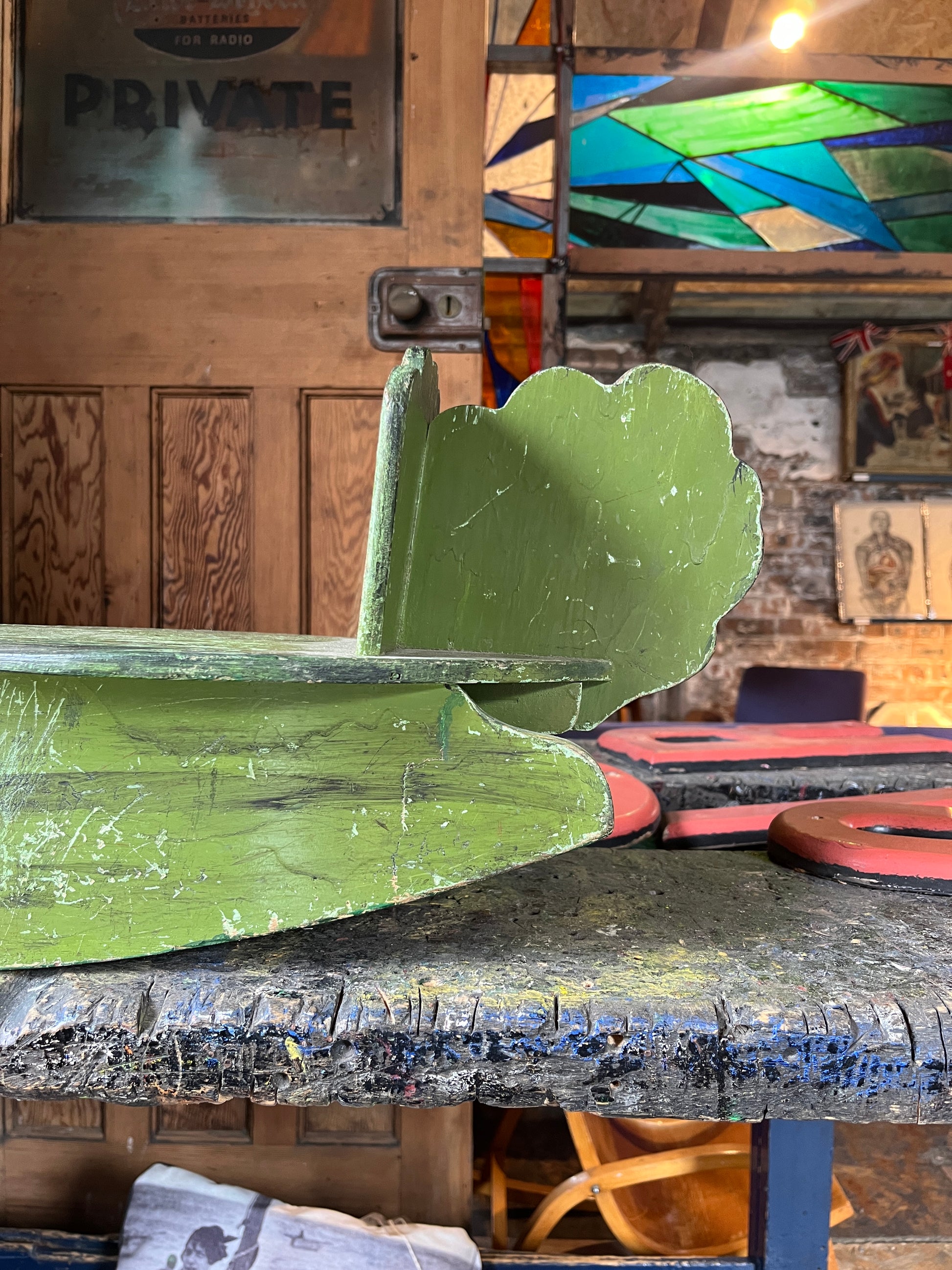 The 1950's Rocker - Rocky Chicken is a delightful children's toy, finished in a vibrant green with a soft leather strap and a tough, lasting design.