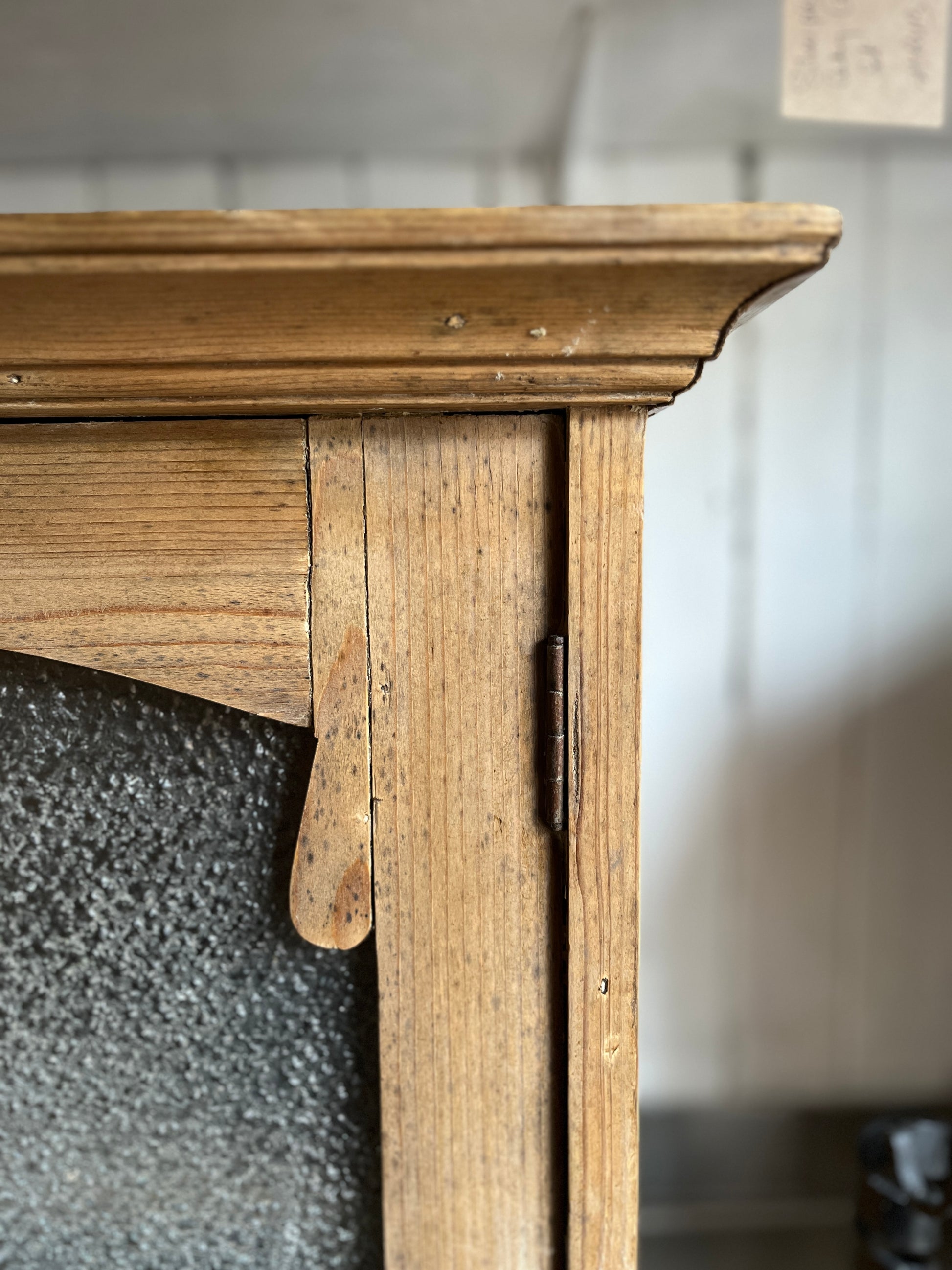 Antique Pine Food Safe / Apothecary Cabinet with Florentine Textured Glass Style