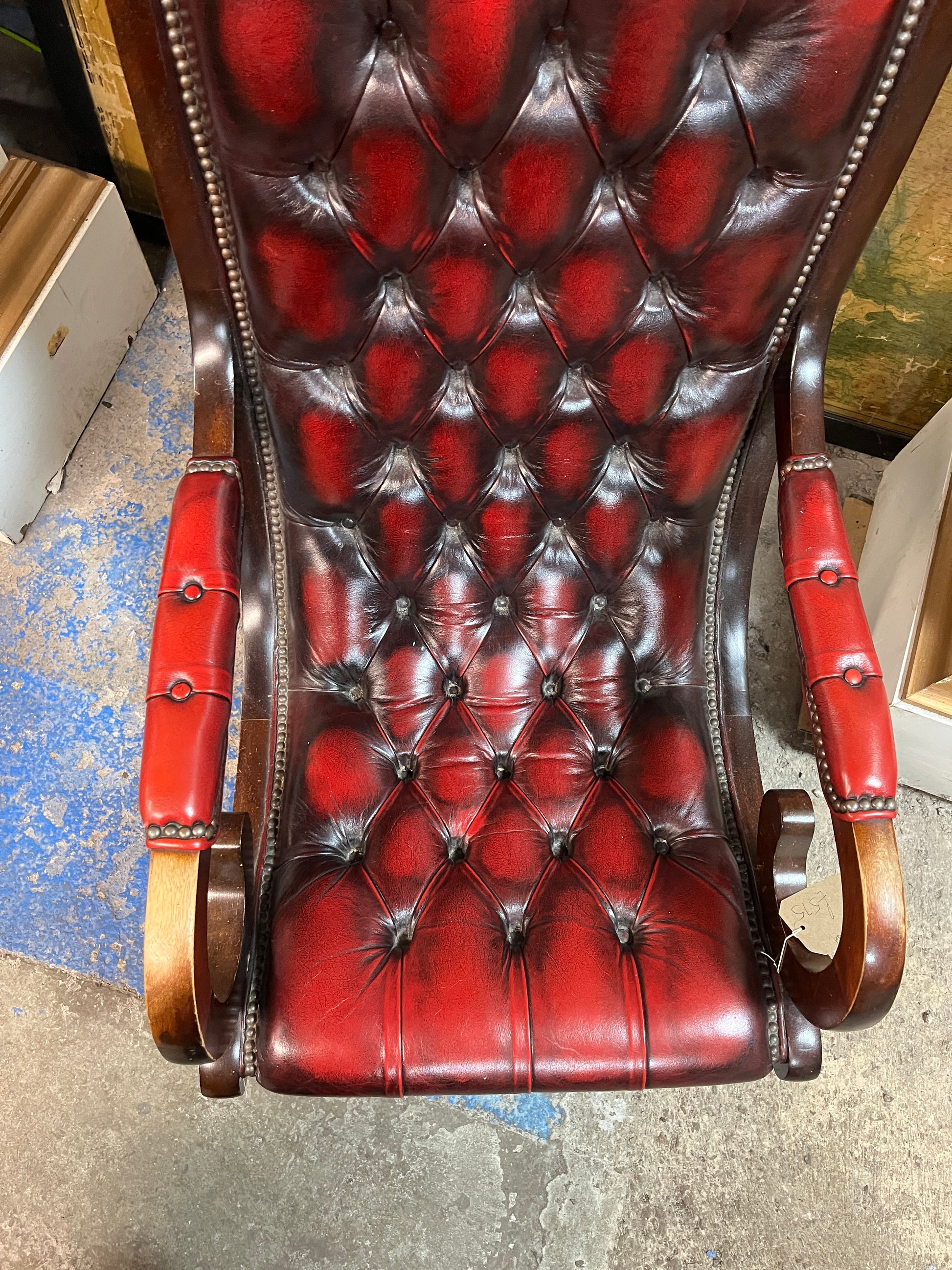 Stunning Burgundy Red Leather Chesterfield Slipper Armchair with button back