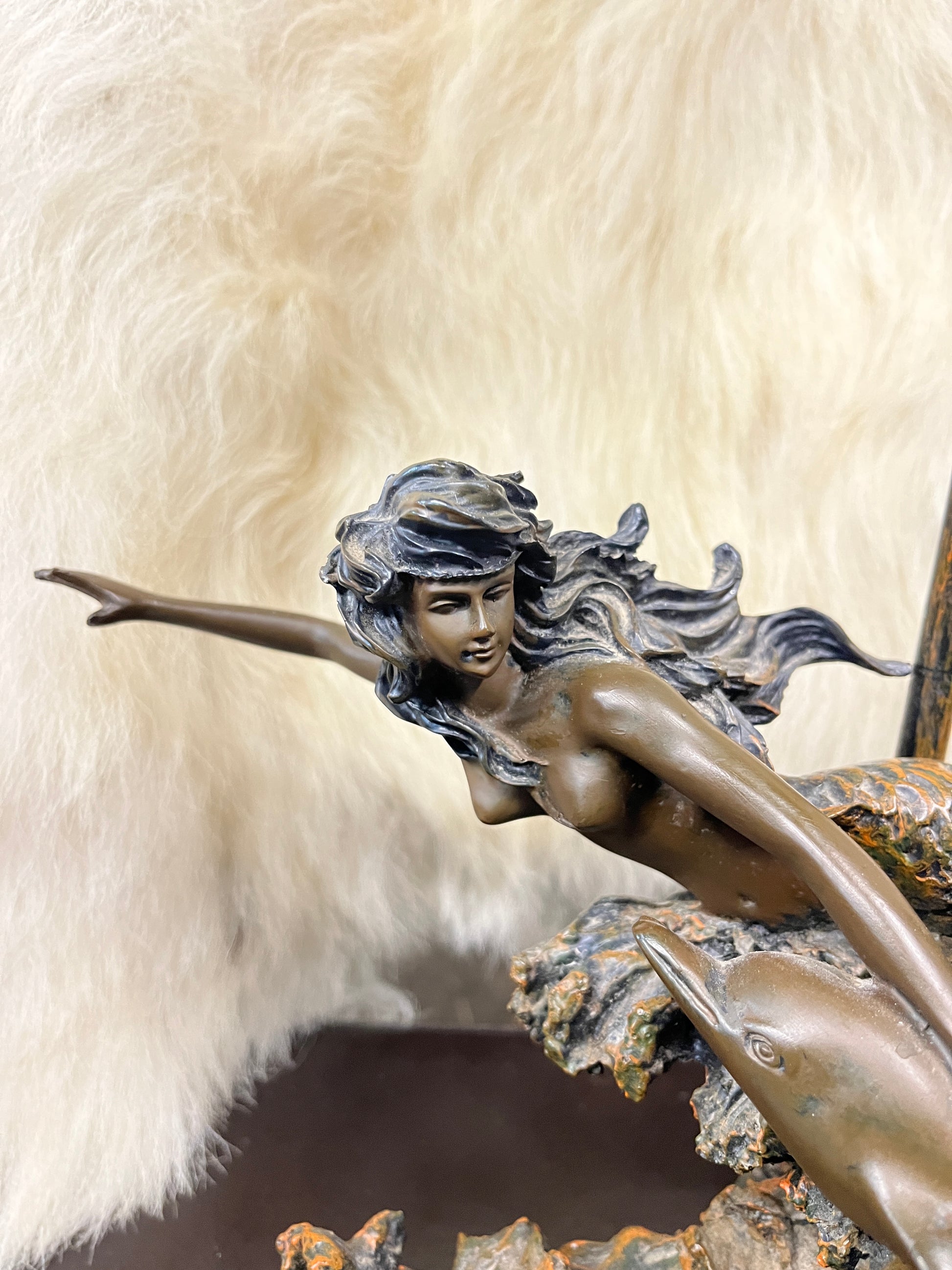 Vintage Mermaid Swimming with dolphins bronze lamp