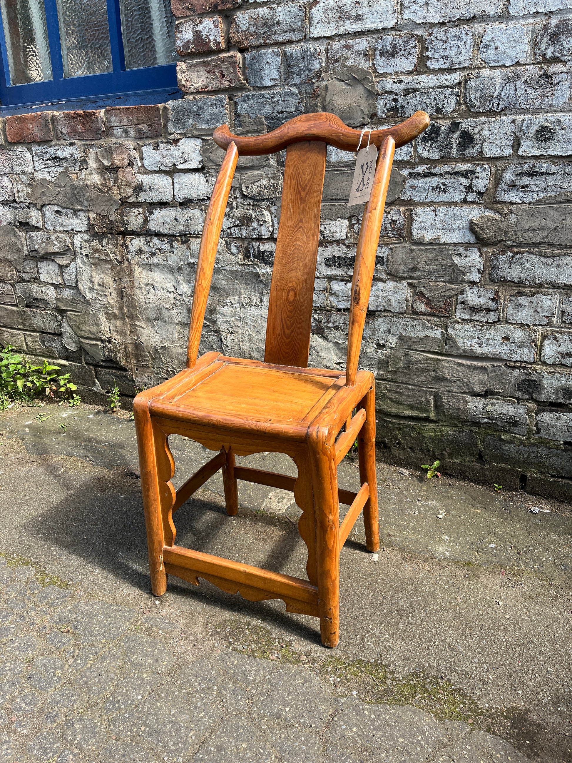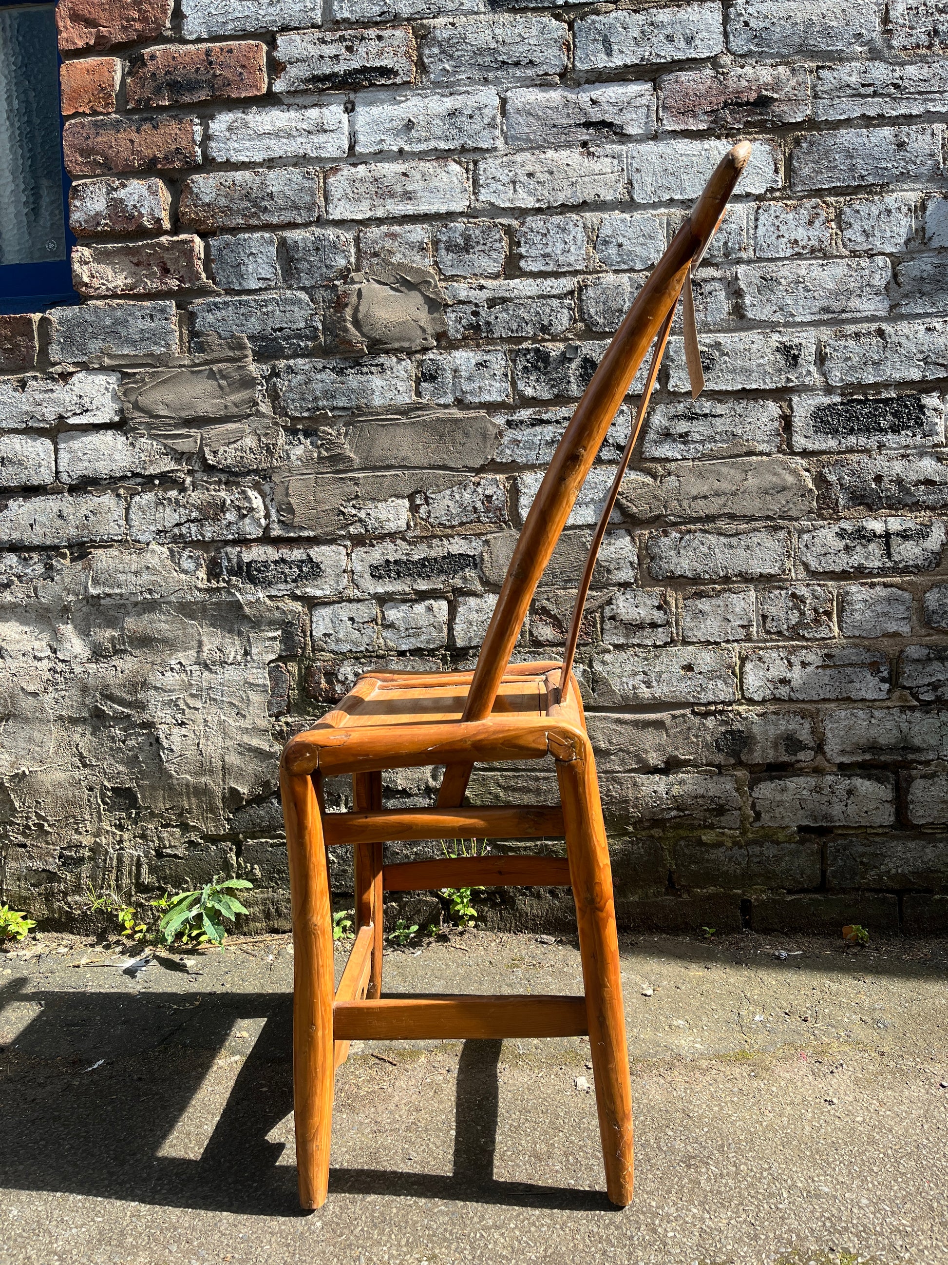 Distinctive 19th-century Qing Dynasty yoke-style high-back decorative chair featuring a slung back design, crafted from teak / Douglas fir.