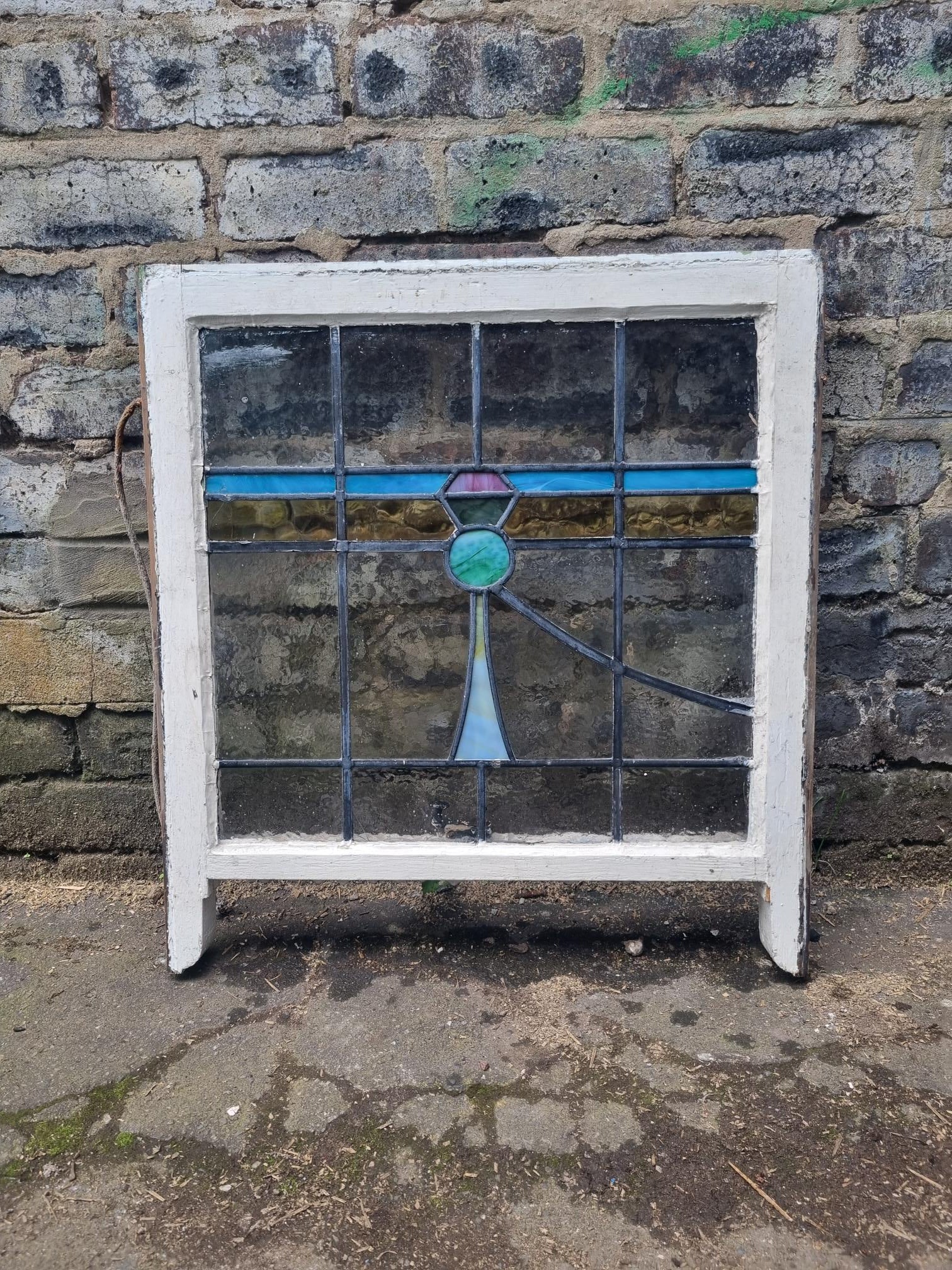 3 x Scottish Thistle Stained Glass Window with Original Frame (609 x 705)