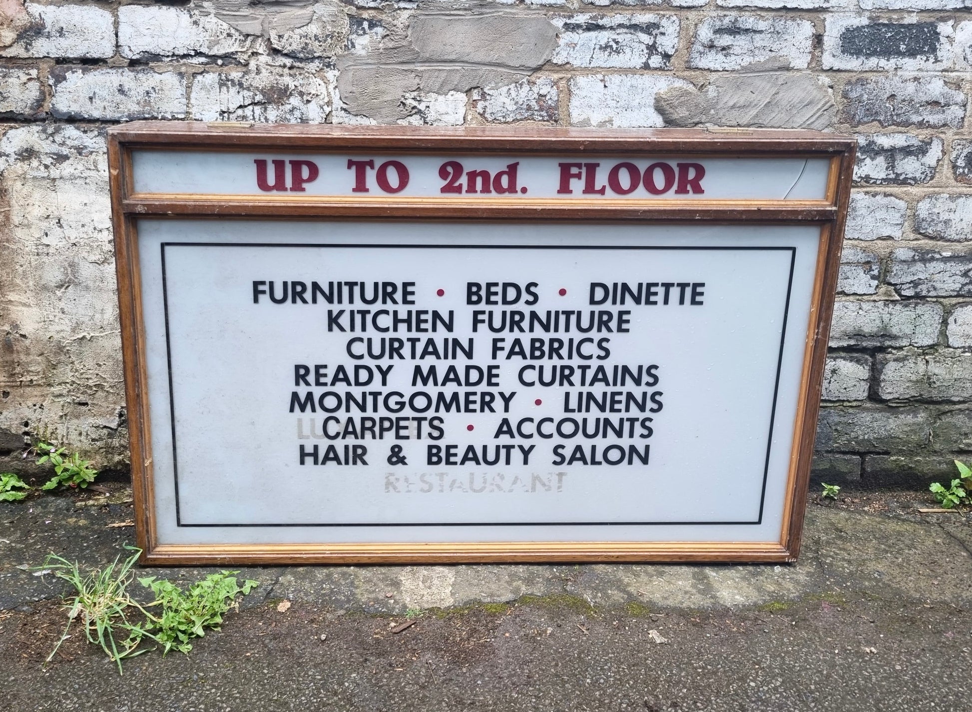 Large Antique Department Store Lightbox "Up to 2nd Floor" Sign